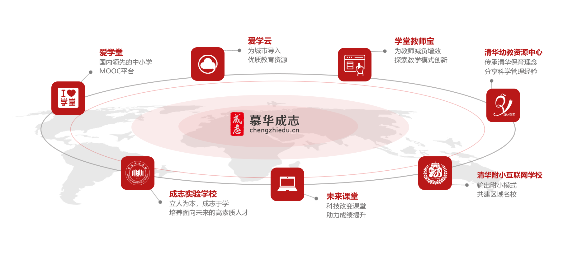 慕華成志旗下愛學堂、愛學云、學堂教師寶、清華幼教資源中心、清華附小互聯(lián)網(wǎng)學校、未來課堂、成志實驗學校等,涵蓋教育科技服務各個板塊,已發(fā)展成為中國少數(shù)能為客戶同時提供教育科技、教育實體及投資運營等全方位教育產品和服務的企業(yè)之一。截至目前,慕華成志產品覆蓋25個?。ê愀邸拈T特別行政區(qū))、107個城市、20000多所學校、500萬用戶。