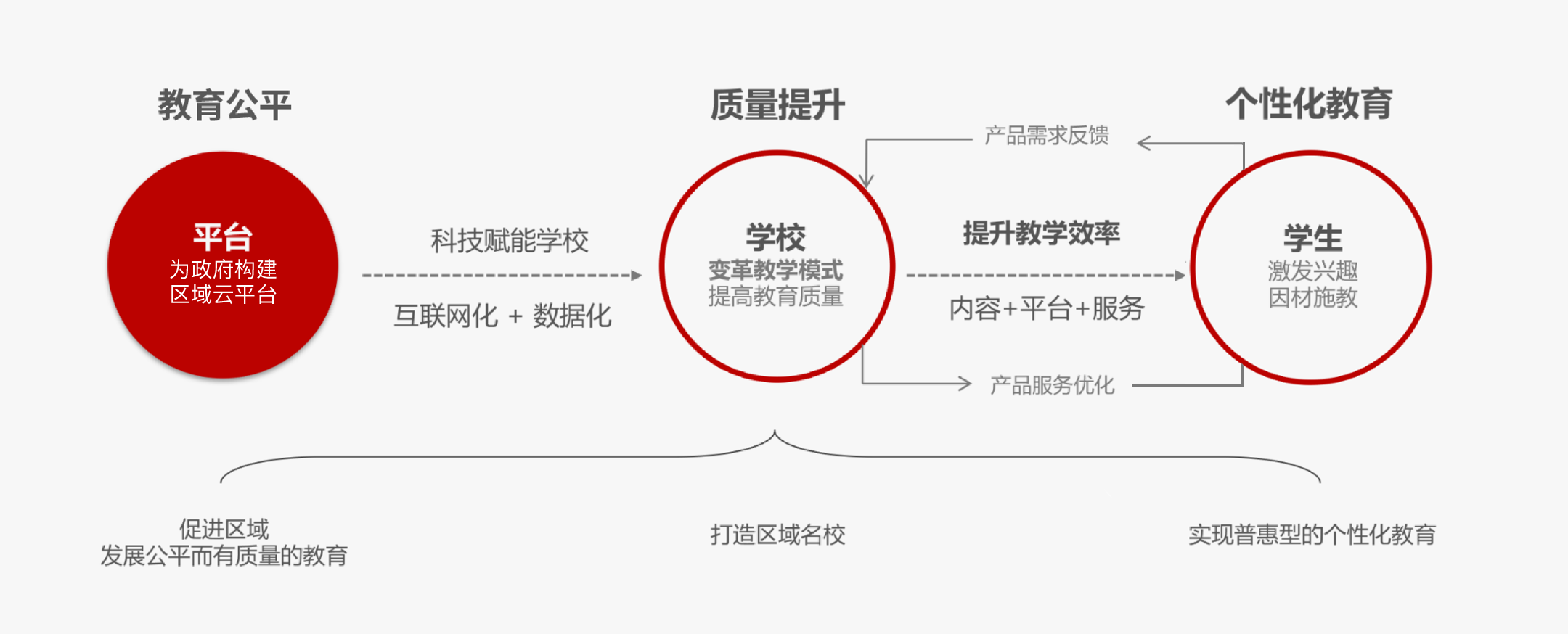 慕華成志深度融合清華優(yōu)質(zhì)教育資源,充分發(fā)揮鏈接政府與學校和師生的橋梁作用,一方面為政府端構(gòu)建數(shù)字化課程平臺和教育云平臺,以促進教育公平;一方面,以科技賦能學校,變革教學模式,提高教學水平,與學校共同重構(gòu)教與學體驗,促進學生享受個性化的教育,從而真正打造T2B2C教育產(chǎn)業(yè)互聯(lián)網(wǎng)新模式,推動區(qū)域教育升級,成為教育高質(zhì)量發(fā)展的助推器。